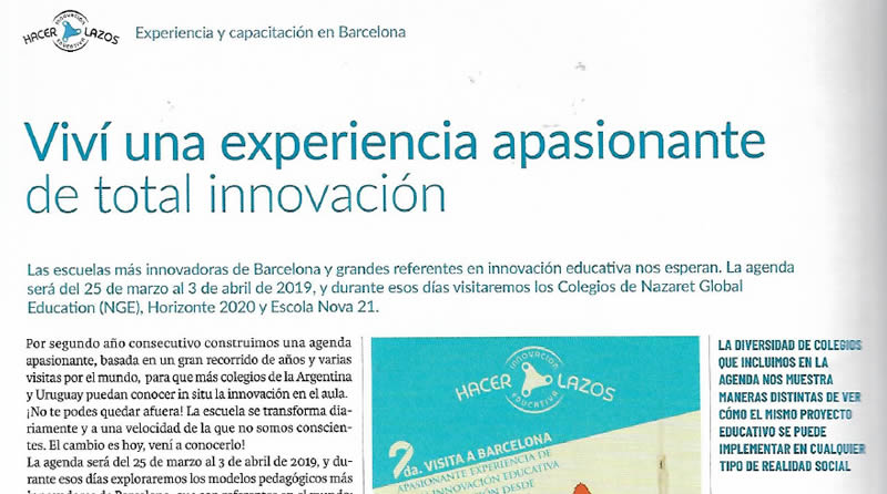 Desde el 2018 junto a Nazaret Global Education capacitamos en Buenos Aires a más de 600 directivos y docentes de más de 100 escuelas. Nazaret Global Education viene capacitando a más de 6.600 maestros y líderes educativos, entre Europa, África y Latinoamérica, impactando así en más de 700 escuelas.